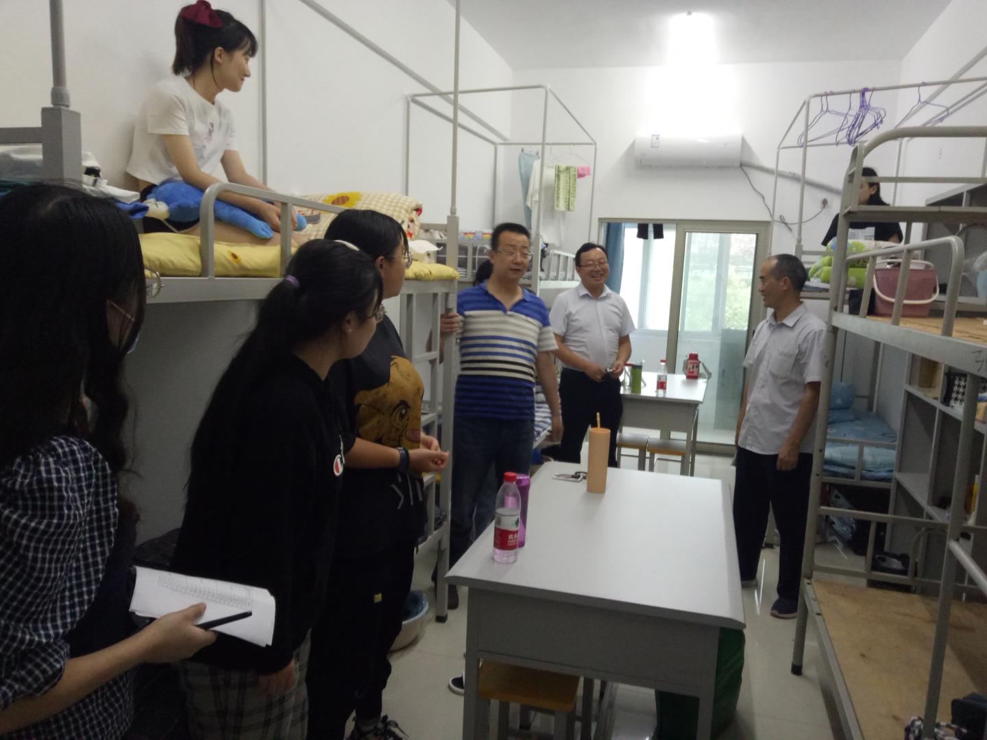 9月3日下午4时半及晚上8点,公司党总支书记李英、经理袁训锋、副经理刘爱军、学工办主任陈倩及新生辅导员、各新生班主任分别前往​英国365集团公司丹江校区及北新街校区新生宿舍,看望2021级新同学。
