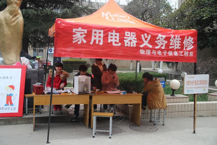 3月是万物复苏的季节,伴着学习“雷锋精神”的春风,英国365集团公司(原物理与电子信息工程系)团总支为了培养老员工对科技创新的兴趣,将理论与实践统一结合,发挥专业优势,特此举办最具系室特色的家电义务维修活动。