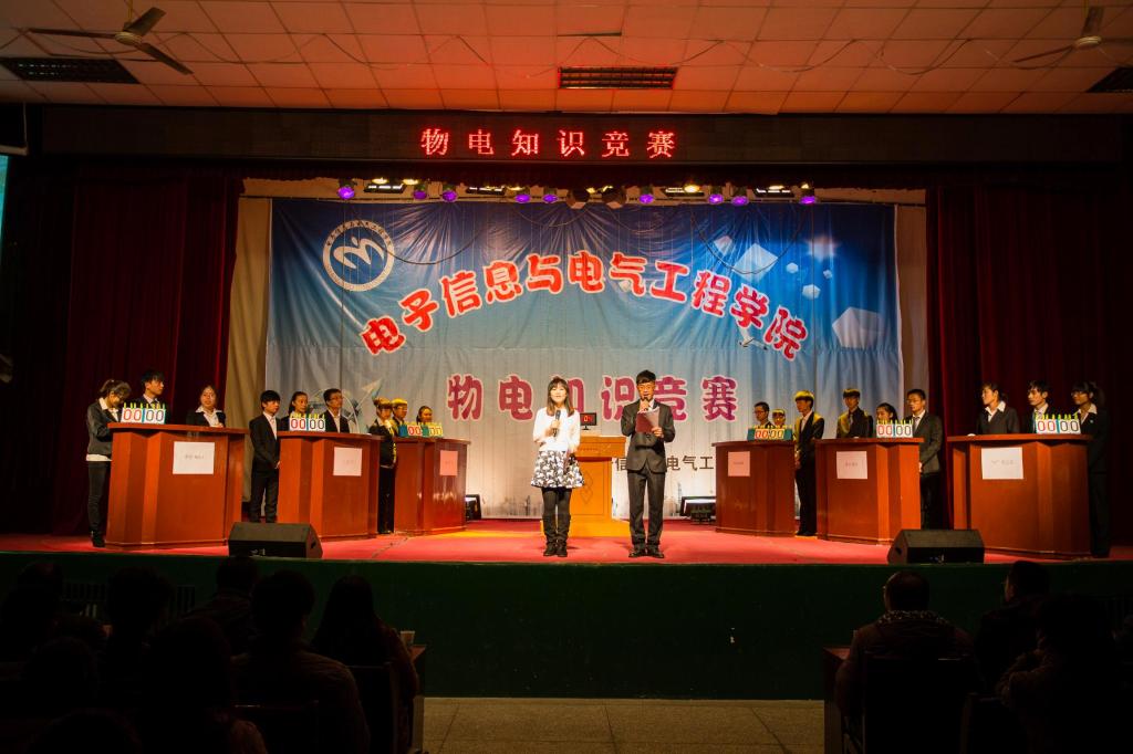 比赛初,李鸿浩向大家解说了公司院徽的设计理念及其含义,让大家充分了解了公司院徽的意义。经过了层层选拔,共18位选手进入决赛,他们分为六组,每组三人。比赛开始后,每组带着自己独特的组名,响亮的口号,富含创意地有序出场。进入紧张的竞赛环节,在第一轮“步步为营”环节中,每组都分别有一道选择题、简答生活物理现象、解释物理原理,凭借扎实的物理功底,平日里的认真观察,各个队都出色的地答对了题目;第二轮的“争分夺秒”扣人心弦,其中胡东东本着敏锐的思维,赢得了观众阵阵掌声。一首《真心英雄》缓和了现场气氛,经过短暂的休息,第三轮“耳急手快”,进入抢答环节,选手抢答有序;第四轮“扭转乾坤”,解释成语的含义及其所运用的物理知识,展现了物理知识在生活中的广泛应用。