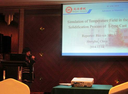 会上,由袁训锋博士指导的员工胡瑞霞作了题为“Simulation of Temperature Field in the Solidification Process of Cast”(铸件凝固过程温度场模拟)的学术交流报告。在报告中,胡瑞霞详细介绍了凝固过程温度场模拟的实现过程,给出了模拟计算获得的部分结论以及结论对生产实践的指导意义。随后的交流活动中,胡瑞霞还与多名学者就凝固过程模拟的发展方向进行了探讨。