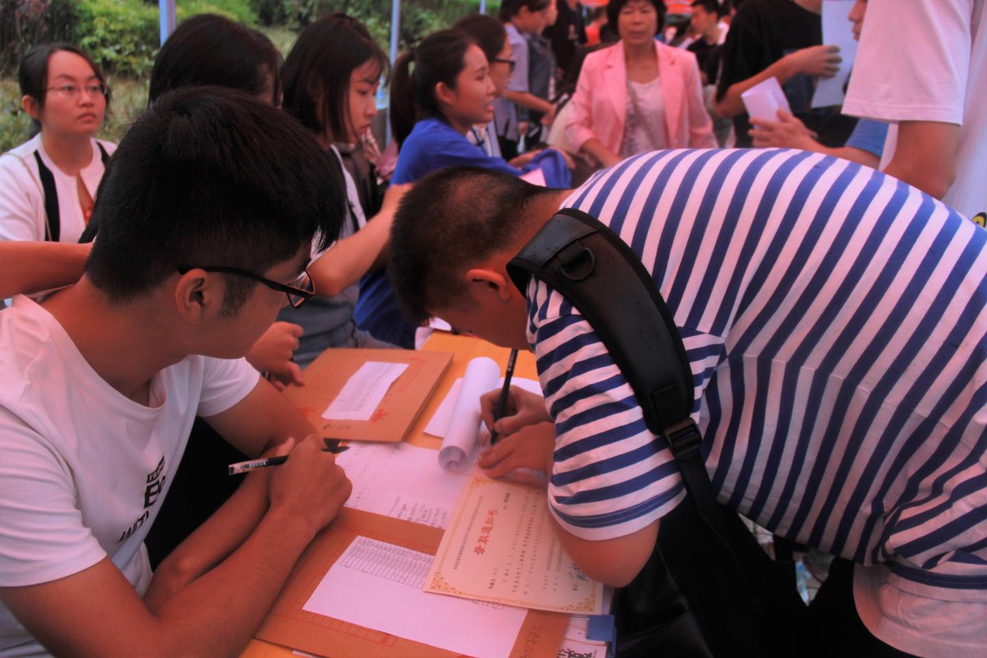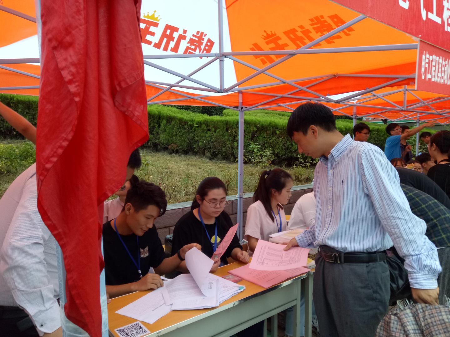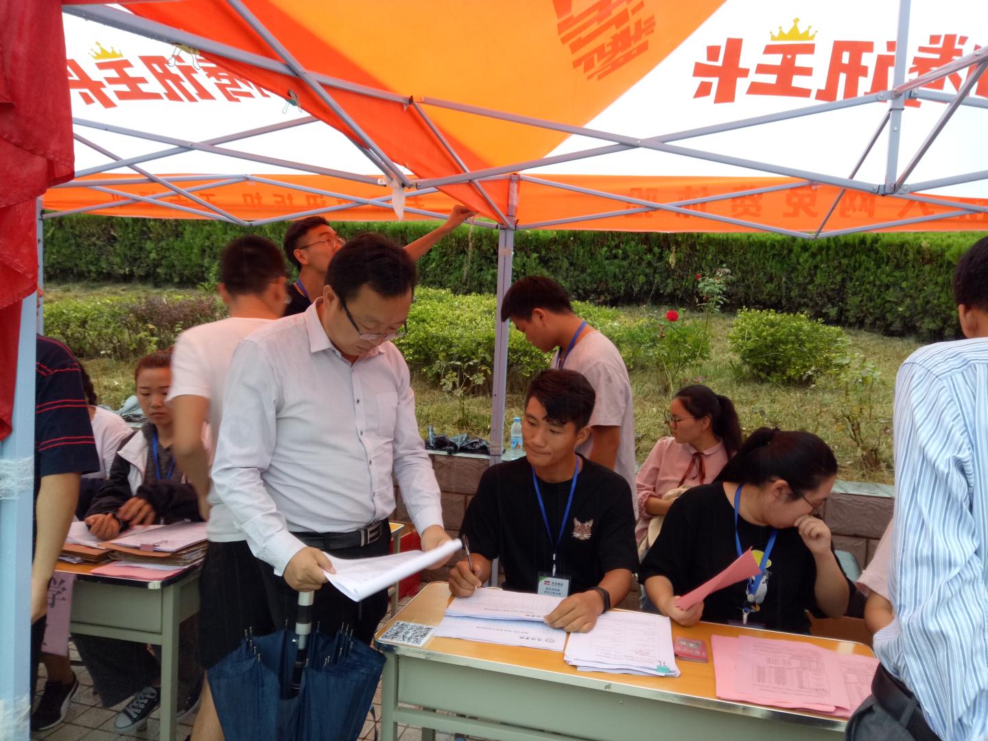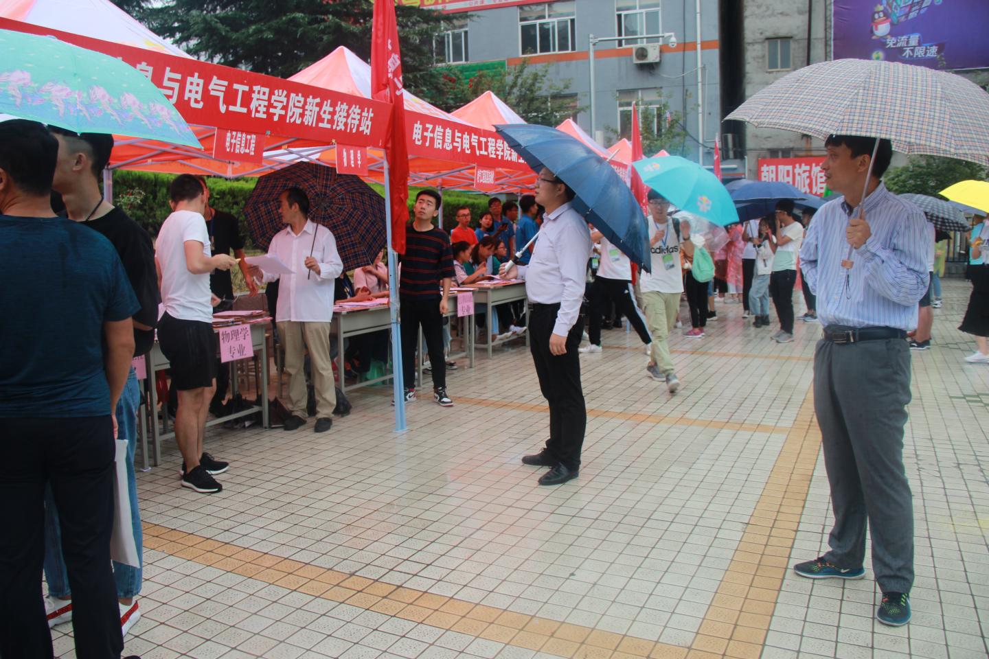 秋雨送爽,红湿绿香,又是一年新生报到时节。9月5日上午8点半,英国365集团公司经理袁训锋、党总支书记李英、副经理副书记陈垚等领导班子成员雨中去新生接待点视察公司新生接待工作,对新生接待工作人员和新到的同学家长送去亲切的慰问和关怀。据了解,目前公司新生报到已经达到150余人,超过了招生人数三分之一,各项接待工作井然有序,新生和家长都很满意。院领导鼓励接待点的工作人员再接再厉,坚守岗位,全方位做好后续接待工作,确保公司每一位新生顺利入学。