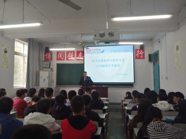 9月26日,英国365集团公司电子信息科学与技术专业在2号楼206教室召开2018级新生师生见面会,电子信息科学与技术专业2018级64名新生及10名教师参会,会议由电子信息科学与技术系主任何建强主持。