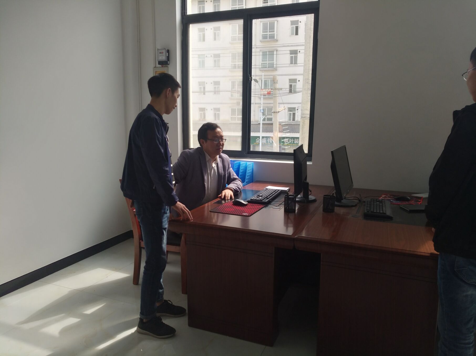 办理完入驻手续后,袁训锋、陈垚博士带领校企合作项目负责人何建强、项目团队成员2015级员工何洋洋、何正迁、林立城来到合作企业陕西九杰智能仪表有限公司,与企业总经理毛加兴就3名员工的实习工作任务和产教融合具体事项进行深入的沟通交流。双方表示在基本完成横向课题“智能水表软件设计”的基础上,将进一步开展商洛市智能水务系统联合研发。