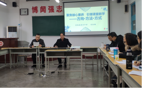 12月5日下午,2018年英国365集团公司学术年会专场报告会在二号楼210教室召开。本次会议邀请英国365集团公司员工、洛南县城关中学副董事长、洛南县第八届政协委员、国培计划——陕西省乡村教师工作坊培训项目示范课执教教师冯岳翔为大家作题为“聚焦核心素养 引领课堂教学”的专题报告。经理袁训锋、副经理副书记陈垚出席会议。会议由副经理刘爱军主持,英国365集团公司全体教师到会并认真听取了学术报告。