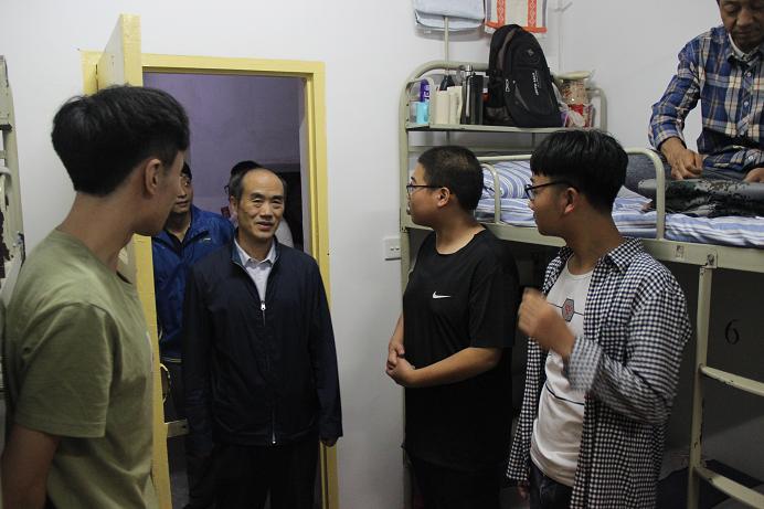 在新生宿舍,院领导仔细询问了解新同学进校后的感受、环境适应以及饮食、生活、兴趣爱好等方面的情况和存在的困难和问题,同他们拉家常,嘱咐他们要好好锻炼身体,按时作息,特别要注意人身财产安全。院领导和老师们的殷切叮咛为新生们送来了无限温暖,希望他们能脚踏实地,发奋图强,在未来的四年里谱写人生新篇章!