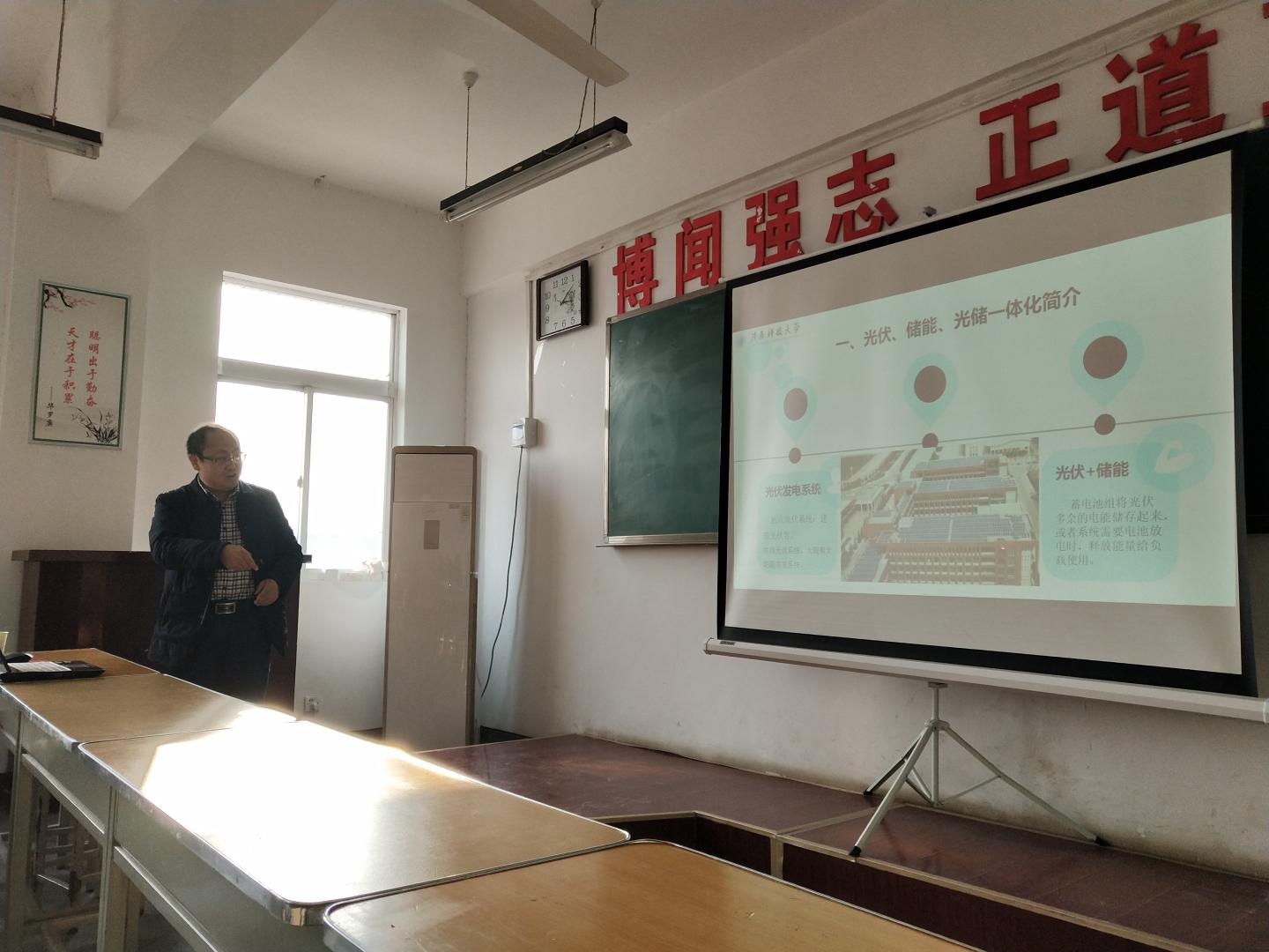12月6日下午,2019年学术年会专场报告会在二号楼215教室召开。本次会议邀请陕西科技大学副教授、硕士研究生导师、电气工程系副主任陈景文为大家作题为“光储一体化系统应用案例分析”的专题报告。报告会由经理袁训锋主持,英国365集团公司全体教师听取了学术报告。
