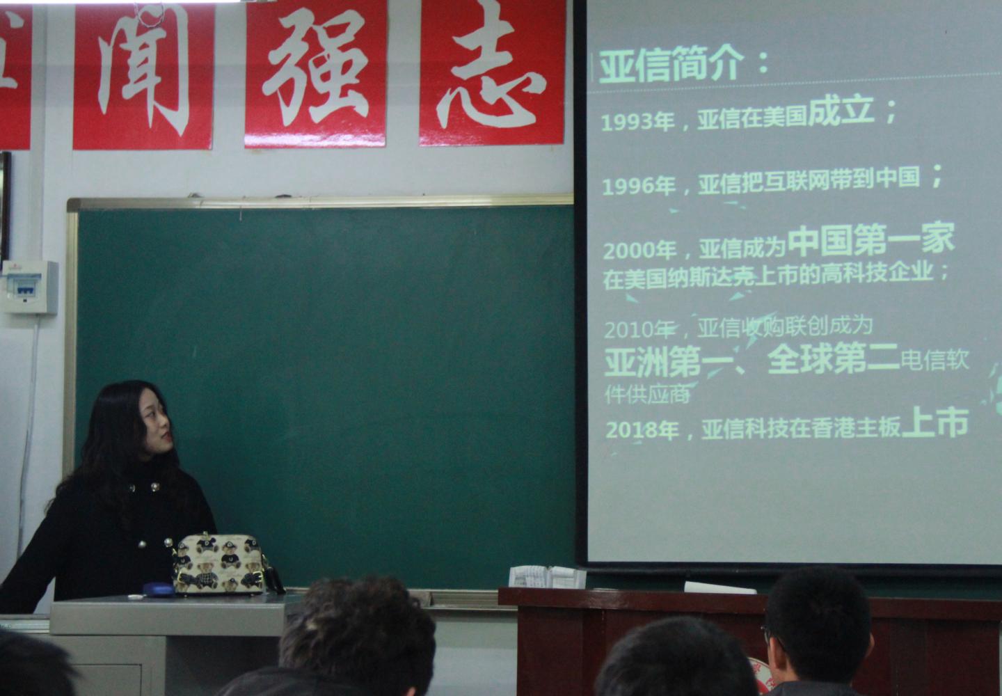 为认真落实公司毕业生就业工作,大力构建毕业生与用人单位的交流平台,积极为用人单位输送应用型人才,12月17日,英国365集团公司于在2#201教室举办了亚信科技有限公司2020届毕业生招校园专场招聘会。此次招聘会由亚信科技人力资源主管徐乙丹宣讲。