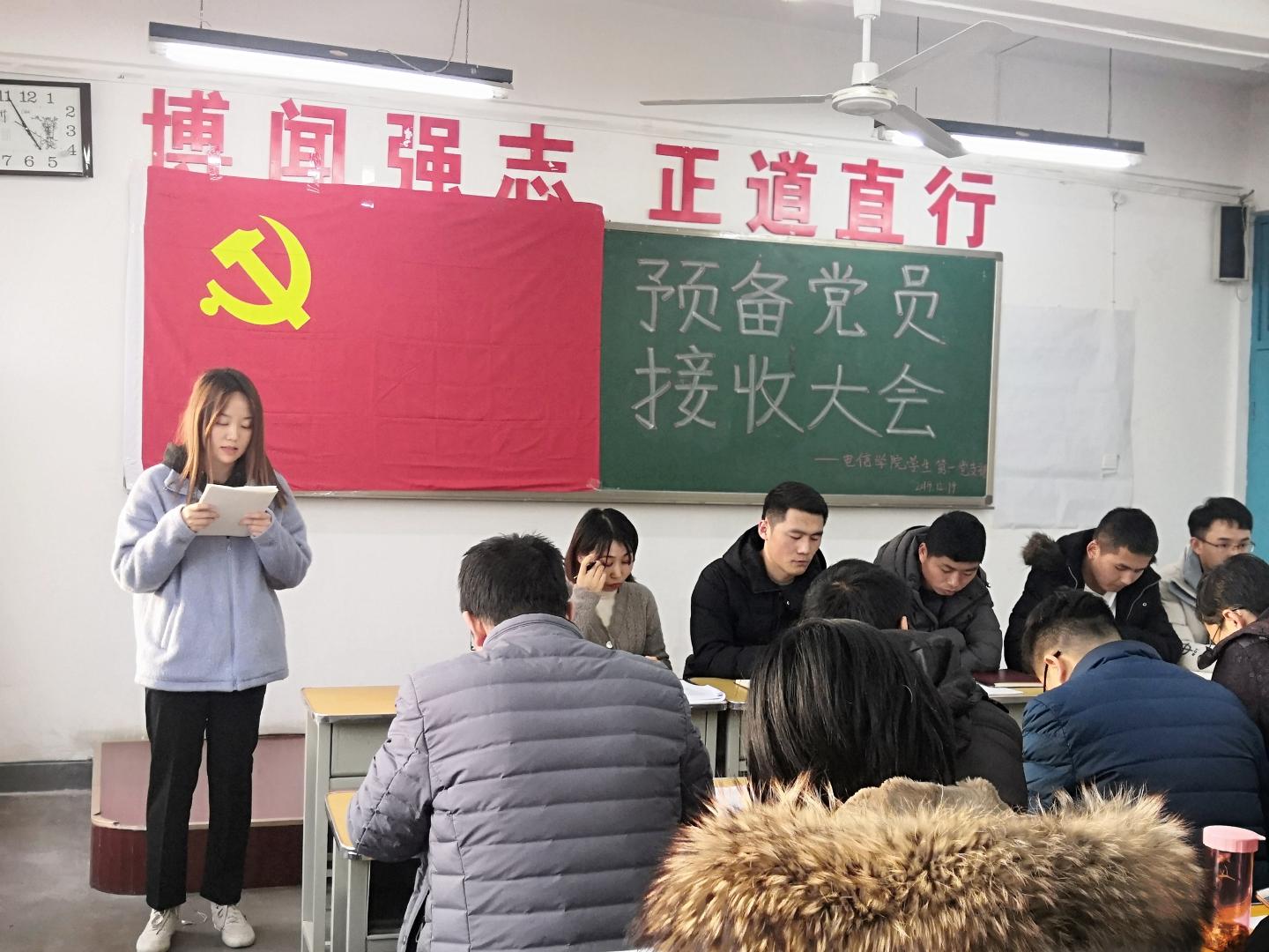 按照党员发展程序和计划安排,12月17下午,英国365集团公司员工第一党支部在2号教学楼215教室召开了支部大会,讨论接收武晨等20名同志为预备党员。参会人员有党总支书记李英、支部全体党员、20名发展对象及其入党介绍人。大会由支部书记任艳主持。