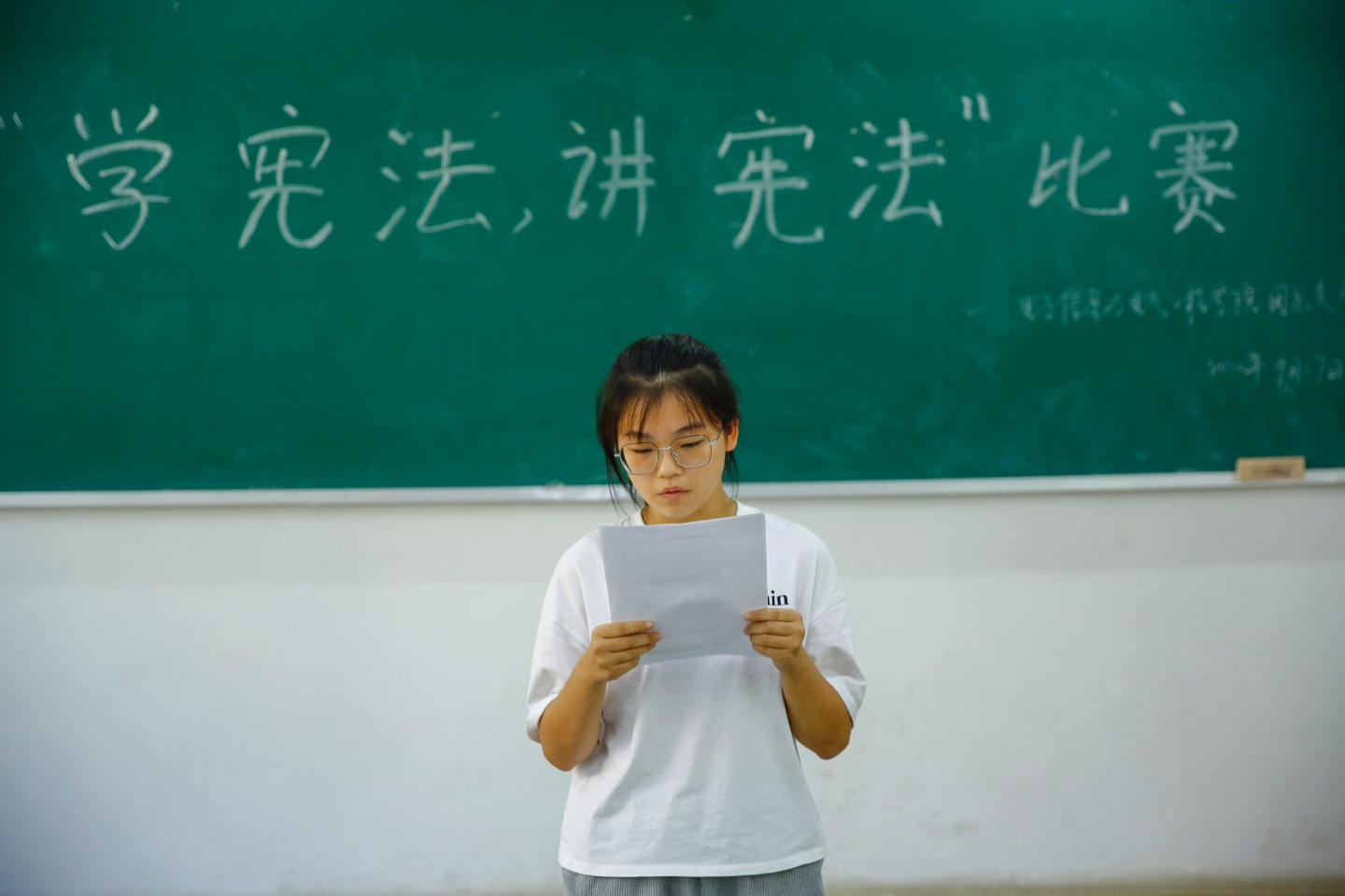 赛场上,参赛者们着装整齐,精神抖擞,以饱满的热情和激昂的声调向我们阐述了学习宪法的重要性以及立法于心的意义。评委们从仪表形象,演讲内容和演讲技巧三个方面为参赛成员打分并评出优胜者。