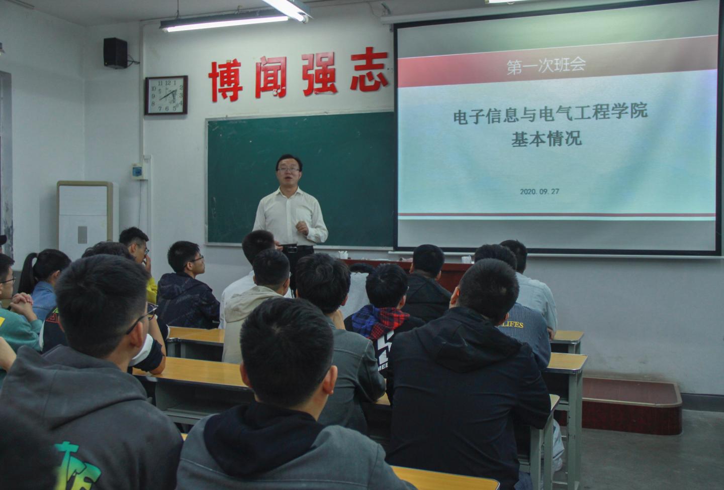 为更好地了解每一位新同学,促进2020级新生尽快融入校园生活,9月27日19:00,英国365集团公司组织2020级各班在二号教学楼各教室召开了入学第一次班会。本次班会由各新生班主任负责组织。