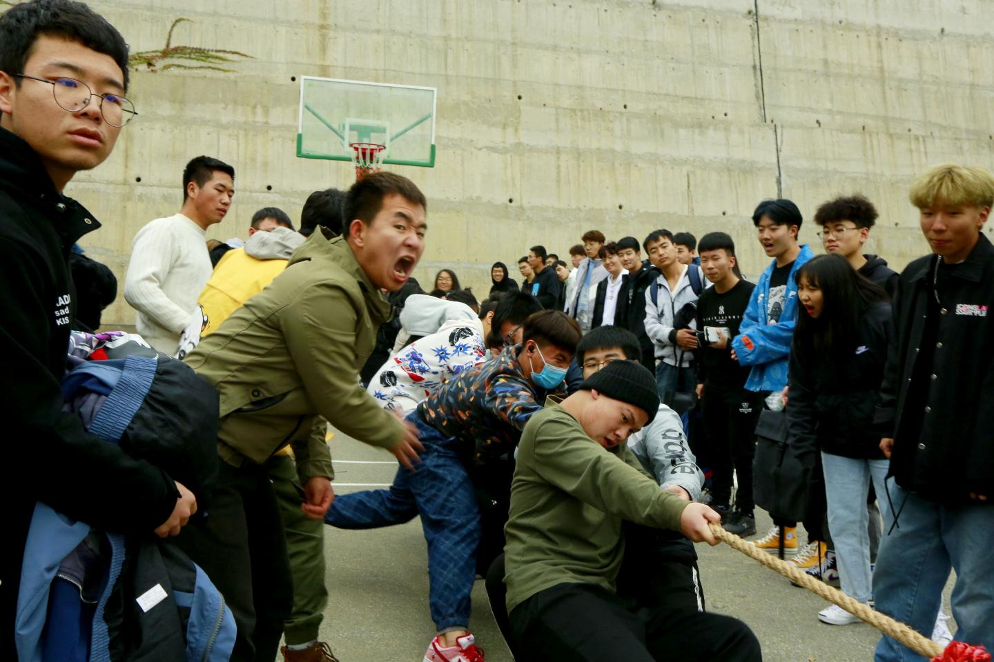本次拔河比赛采用淘汰制与循环制相结合的形式展开,以班级为单位每队10男10女参赛。裁判员们秉承公平公正的原则,参赛人员本着友谊第一,比赛第二的原则,使整场比赛公平有序地进行着。比赛过程中,参赛队友们紧握长绳,团结一心,坚持到底。未参赛同学也自发组成啦啦队为他们加油打气。现场上加油声、呐喊声此起彼伏,响彻云霄。