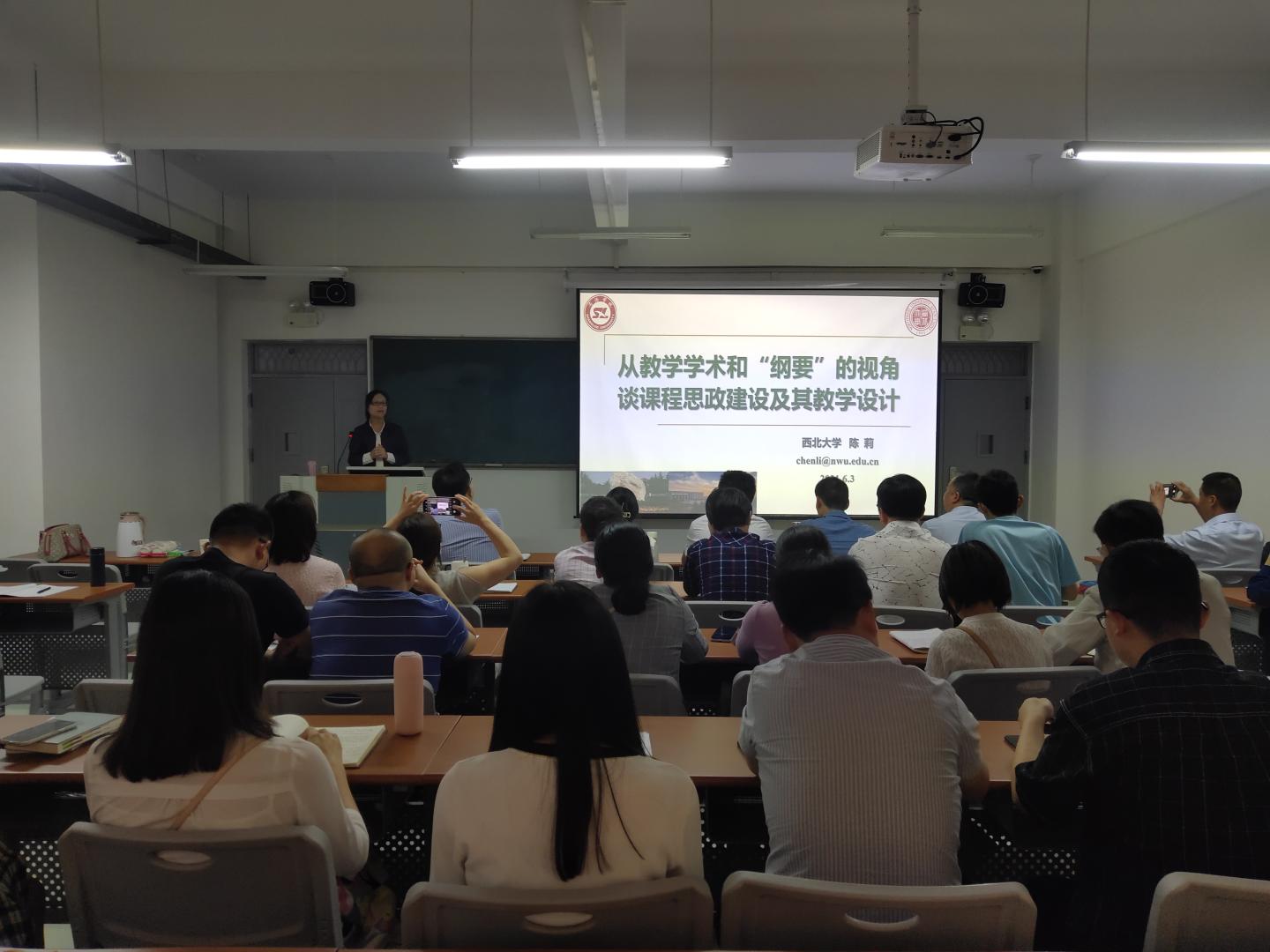 会上,陈莉教授作题为《从教学学术和“纲要”的视角谈课程思政建设及其教学设计》的精彩报告。陈莉教授结合自己(团队)的课程思政建设经验,分别从“教学学术理念、思政课程与课程思政、课程思政建设指导纲要、课程思政建设案例、课程思政教学设计案例、课程思政建设的思考”6个方面,通俗易懂、由浅入深地讲解了课程思政的来源、重要性、以及如何建设等大家关心的问题,为课程思政建设提供了新视角、新思路。
