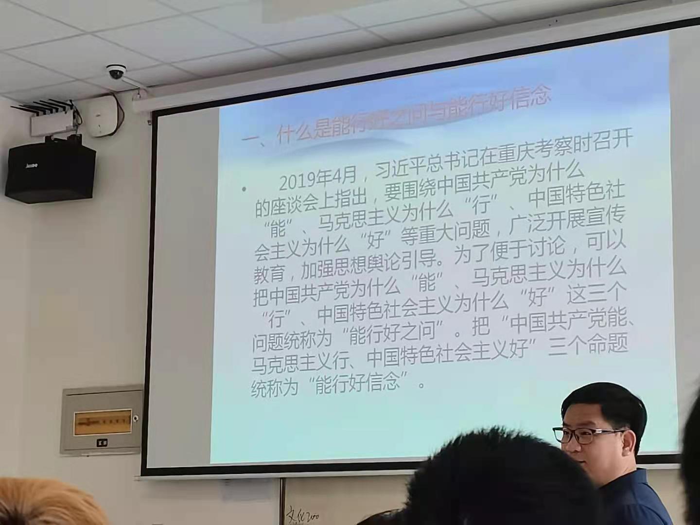 课堂上,李龙强老师向同学们介绍了开设本门课程的原因以及背景,通过PPT展示进一步让同学们明白了什么是“能行好之问”、什么是“能行好信念”等一系列思政基础知识。李龙强老师以“贯彻‘科技强国’战略,加快科技创新步伐”为主题,分8个部分与大家分享了学习习近平总书记关于建设科技强国的重要论述以及对建设科技强国部署的重要内涵。