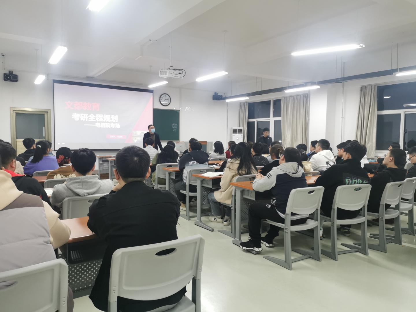 3月7日晚,英国365集团公司在丹江校区3-201、3-204教室召开2019级考研动员宣讲会,会议采用线上线下相结合的方式进行。会议由经理袁训锋主持。文都考研全国巡讲师马回峰、文都教育郭鑫老师、辅导员吴茜老师、2019级80名考研学子参加了宣讲会。
