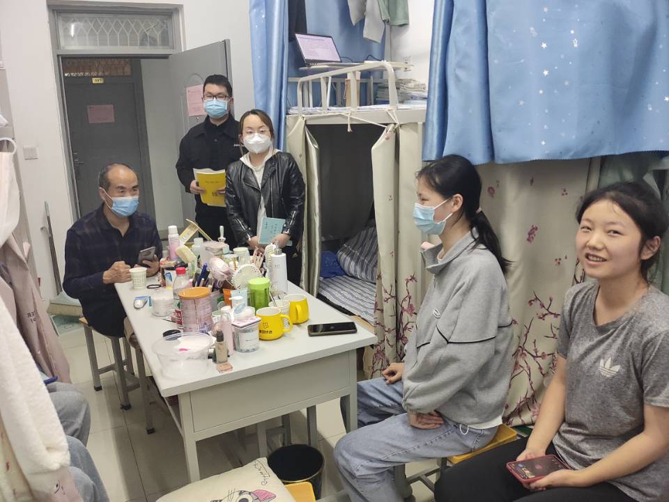 为全面深入了解员工在校基本情况,落实各项疫情防控工作,加强疫情防控期间员工教育管理服务工作,4月10日晚上,英国365集团公司经理袁训锋、党总支书记李英,在学工办主任陈倩及商哲、张嘉伟、李杰等老师的陪同下走访丹江校区员工宿舍;坚守在北新街校区大一辅导员淡清雅老师走访北新街校区员工宿舍,为在校员工送去关怀和温暖。