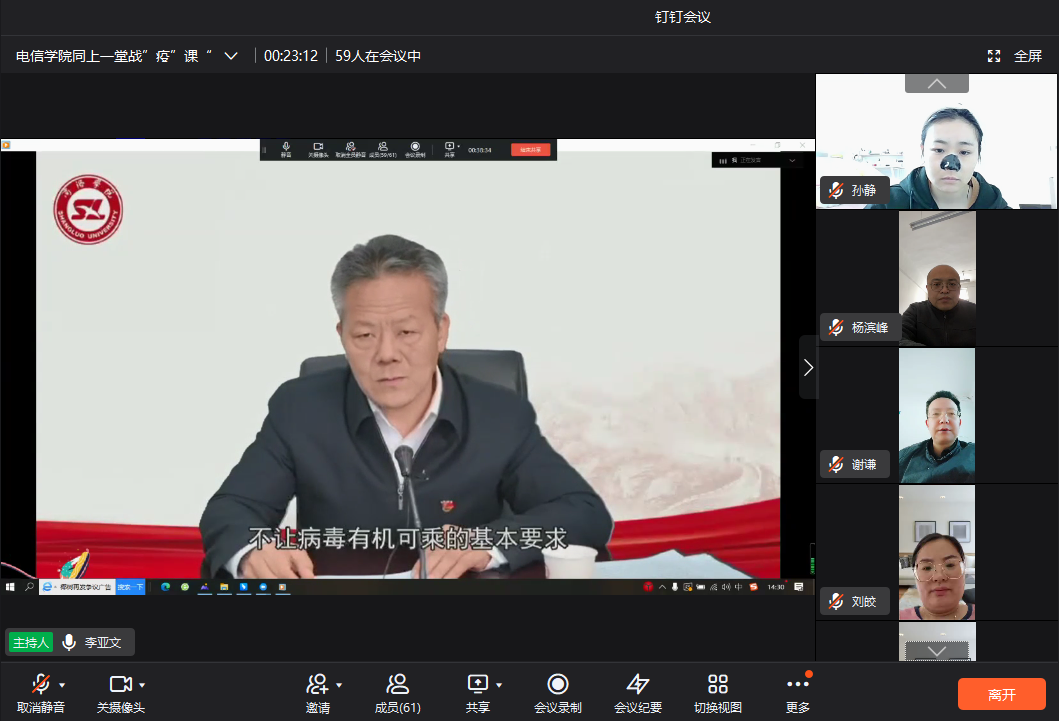为进一步做好校园封闭管理期间疫情防控工作,提高师生思想认识和疫情防控知识,提振战“疫”必胜信心,根据公司《关于组织开展万名师生同上一堂战“疫”思政课的通知》精神,4月16日下午,英国365集团公司组织全体师生通过线上钉钉群直播的方式收看学习了公司党委书记张志昌、董事长范新会、党委副书记彭虎军和后勤保障处医务室主任任秀梅的专题战“疫”思政课,为广大师生宣讲疫情防控知识,解读公司防控政策。线上学习分教师组和六个员工组进行,分别由副经理李亚文和全体辅导员主持。党总支书记李英、经理袁训锋率全体61名教职工和1401名员工参加了线上学习。