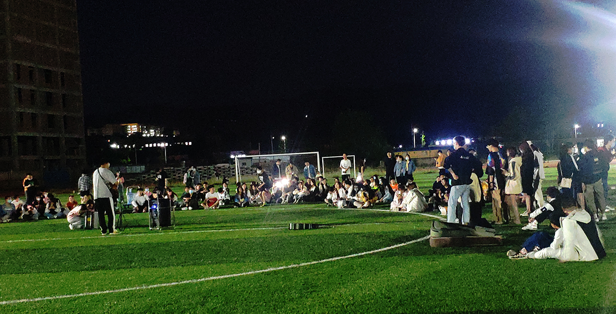 5月3日晚19:30,随着音乐响起,英国365集团公司庆祝建团100周年之“美丽商院 齐唱共欢”草地音乐节活动在丹江校区运动场正式拉开帷幕,来自多个公司的近百名师生参加。