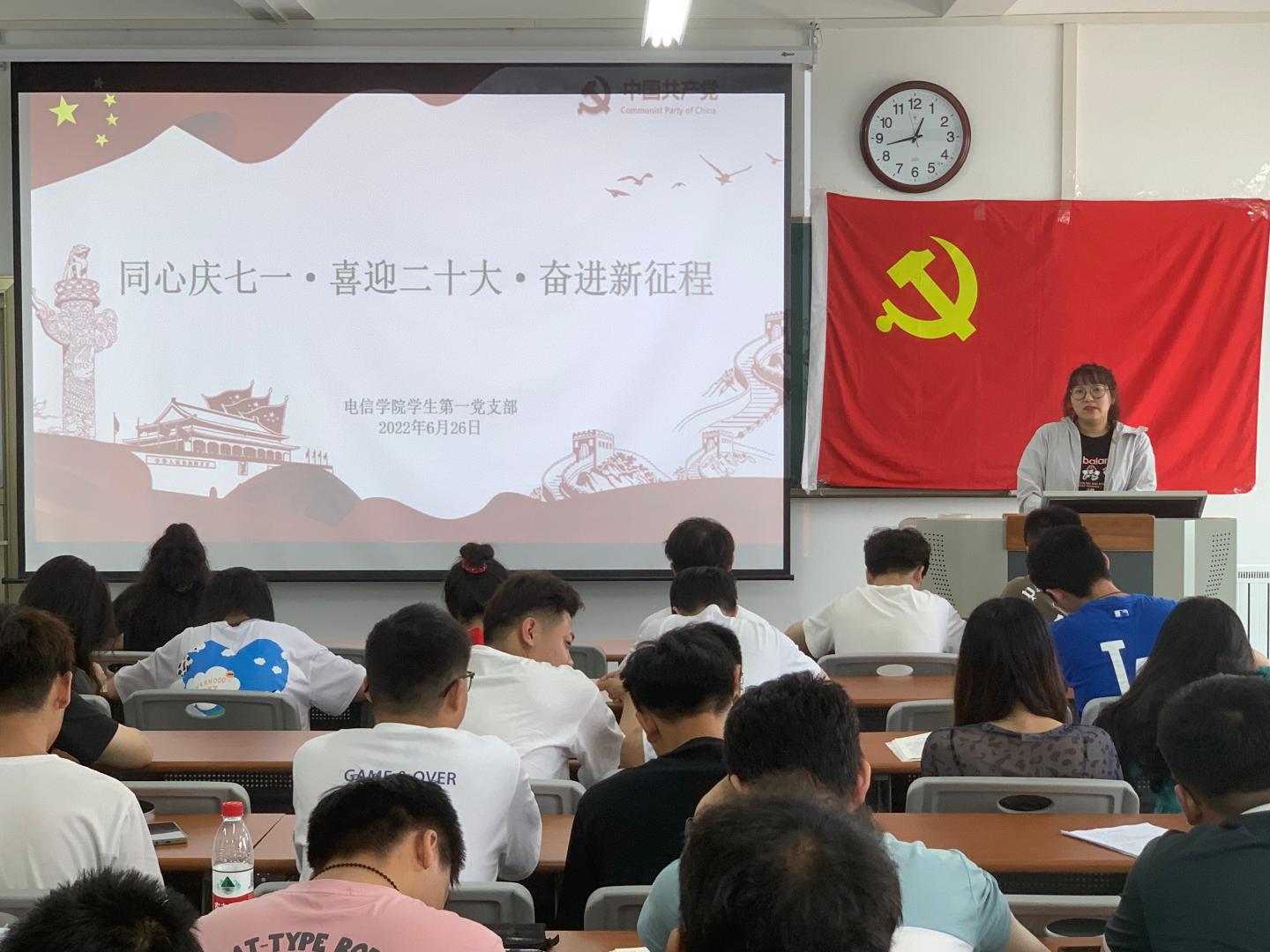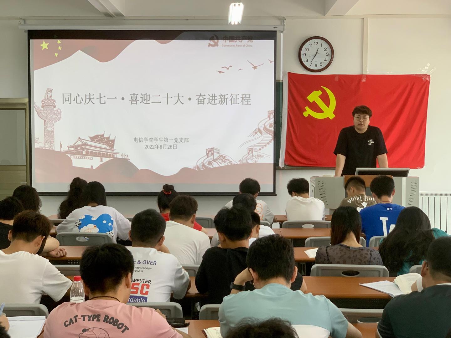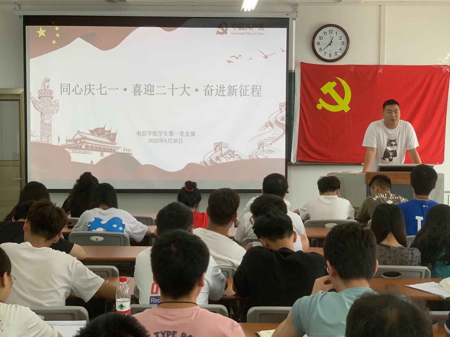 为庆祝中国共产党成立101周年,推动党史学习教育常态化长效化,深入学习贯彻省第十四次党代会精神,迎接党的二十大胜利召开,6月26日下午,英国365集团公司员工第一党支部于丹江校区3-204教室举办了“同心庆七一·喜迎二十大·奋进新征程”主题党日活动。活动由支部书记孙凯主持,支部全体党员参加。