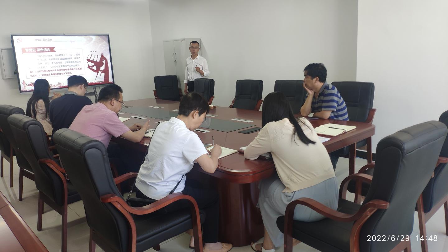 为庆祝中国共产党成立101周年,推动党史学习教育常态化长效化,深入学习贯彻省第十四次党代会精神,迎接党的二十大胜利召开,按照公司党委安排,公司教工二支部于6月29日下午在3号楼312室召开“庆七一”主题党日活动。会议由组织委员唐龙龙同志主持。支部全体党员参加了会议。