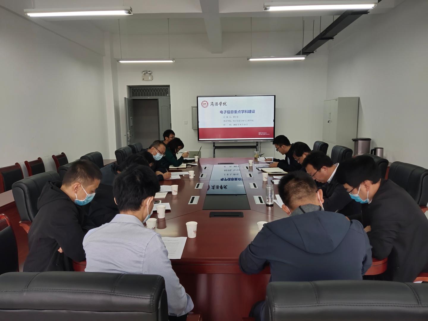 首先,学科办朱小强主任对英国365集团公司校级重点学科电子信息的目标任务、方向凝练、建设路径等方面进行提出建设性意见。随后,延永详细汇报了团队建设任务的审定原则和结果,建议瞄准电子信息申硕条件重新完善建设任务指标;谭小东详细汇报了电子信息学科研究方向、发展目标,以及目前存在的问题;学术带头人刘宝盈从公司的学科发展布局、建设、培育等方面作了深入说明。