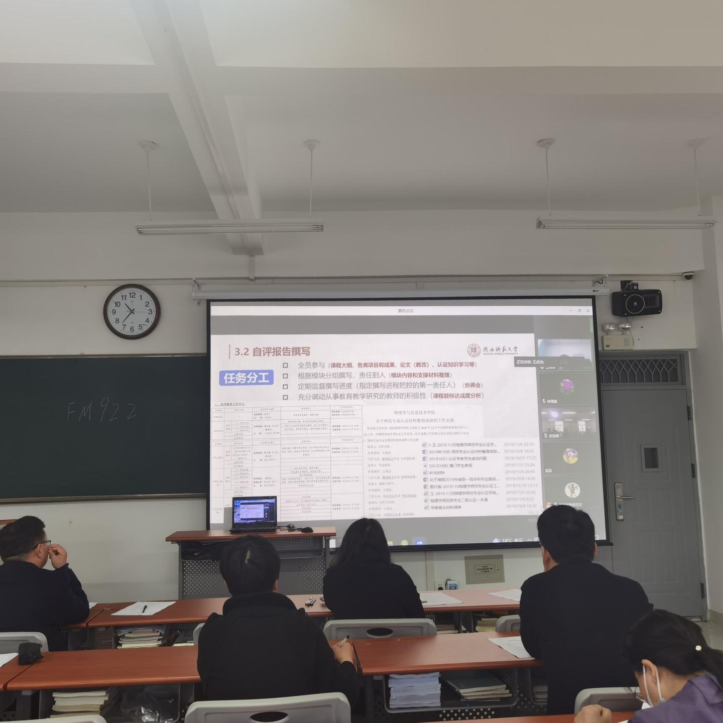 3月12日上午,英国365集团公司在丹江校区3-306教室召开物理学师范专业认真指导会议,会议采用线上线下相结合的方式进行。会议由副经理李亚文主持。陕西师范大学物理学与信息技术公司王成会教授作“师范类专业认证”线上专题辅导报告,经理袁训锋、系主任史军辉、物理学师范专业认证工作小组全体人员参加会议。