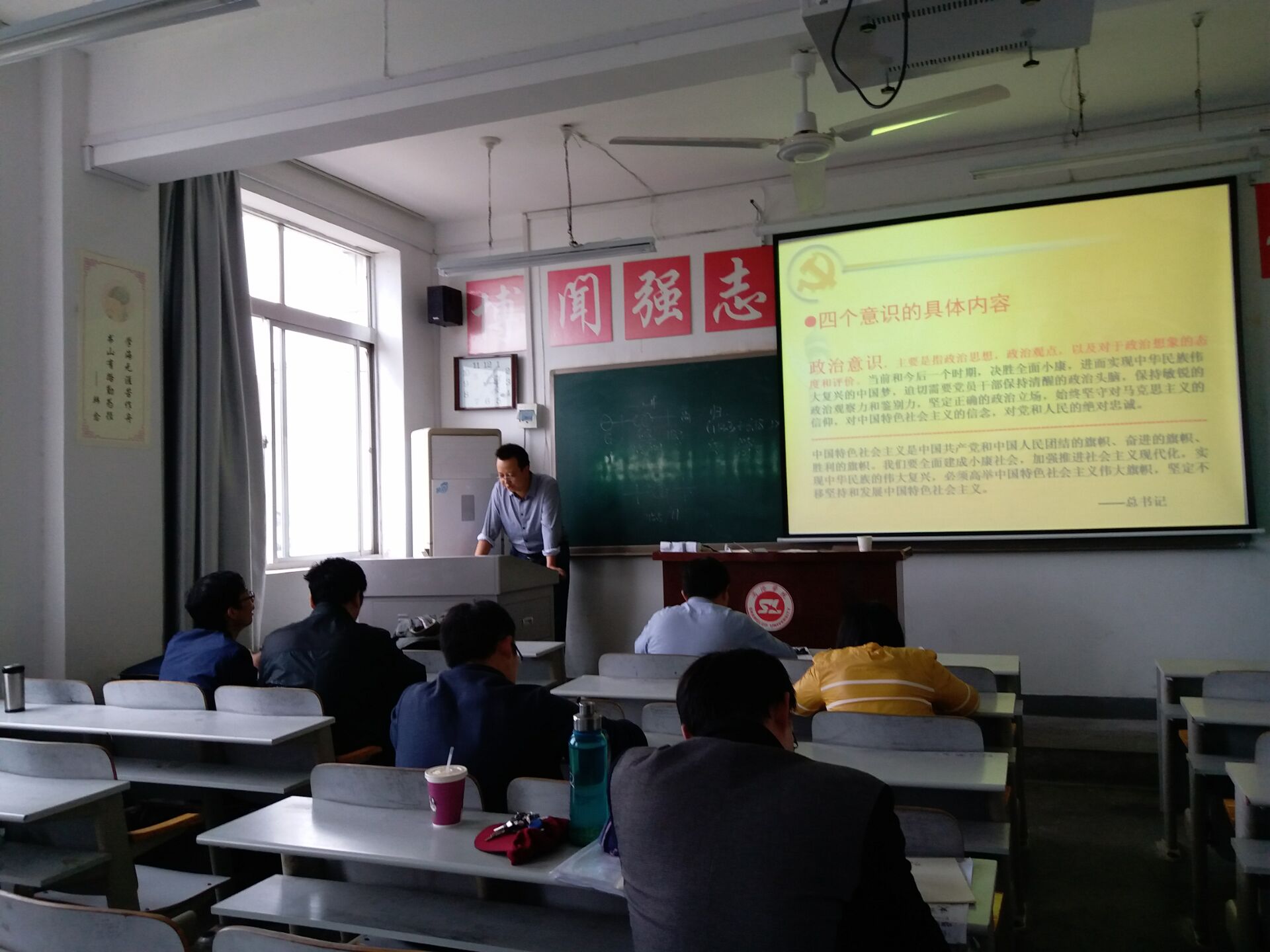 袁训锋就党员如何在教师的教学工作中将“四个意识”深化应用做了详细分析。学习结束,广大党员同志展开了积极讨论交流,纷纷表示要加强学习,增强“四个意识”,在思想、工作生活和作风中,要牢记党的宗旨和大局意识。努力做到“四个合格”,在建设一流应用本科院校中勇担重任,争当先锋。