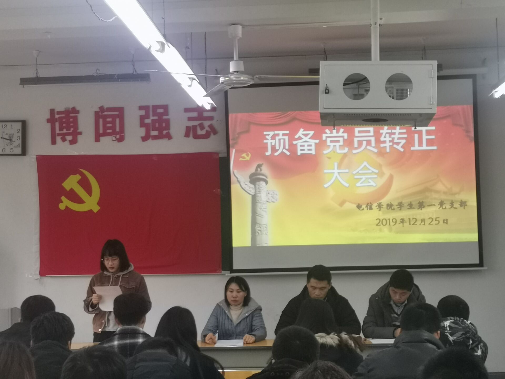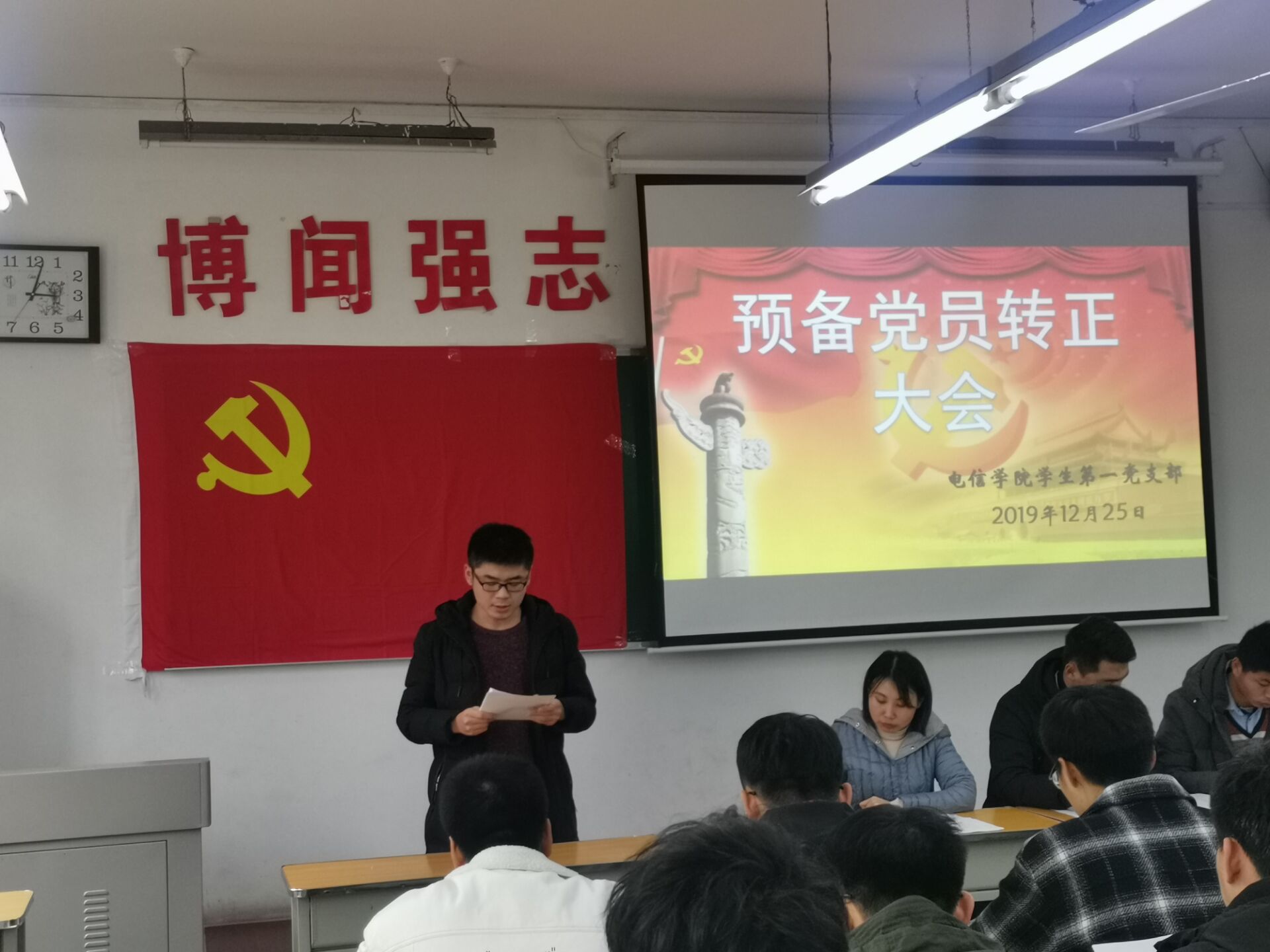 根据党员发展程序和计划安排,​英国365集团公司员工第一党支部于12月15日在二号教学楼210教室召开了支部大会,讨论熊伟等6名预备党员转正事宜。大会由支部书记任艳主持。参会人员有党支部委员以及支部全体员工党员。