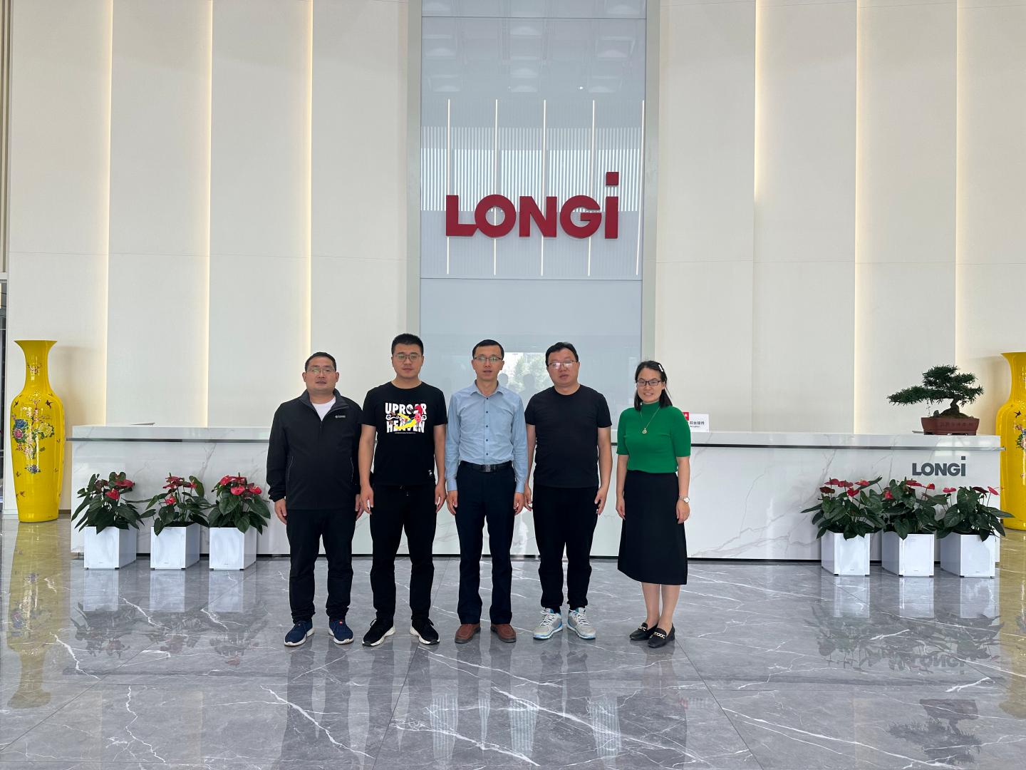 为加强校企合作,巩固校企合作成果,6月21日上午,公司党委书记赵永平、经理袁训锋、副经理李亚文一行赴隆基乐叶光伏科技(西咸新区)有限公司进行走访,洽谈校企合作。