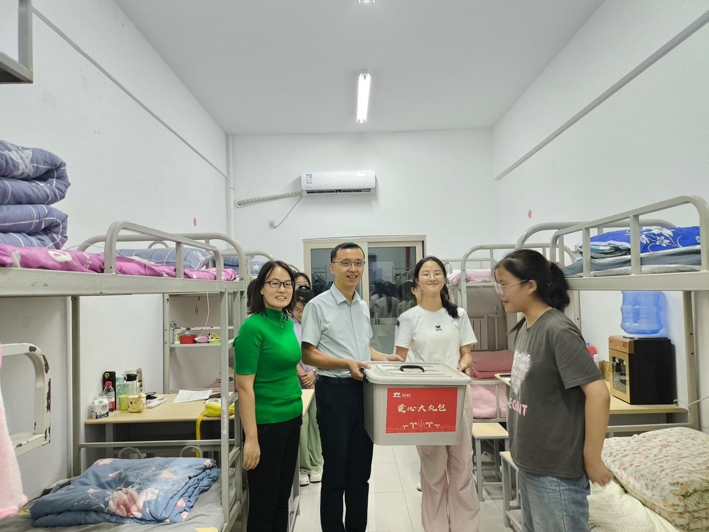 8月29日晚,公司党政领导带领新生班主任、辅导员深入员工宿舍,进行走访慰问,并为家庭经济困难新生送上爱心大礼包。走访期间,老师们详细了解新生们的生源特点、家庭情况、生活习惯以及入校后的感受和遇到的困难,倾听同学们的真实感受,鼓励新生们尽快适应新环境、快速融入老员工活,规划好自己的学习和生活,度过充实而美好的大学时光。