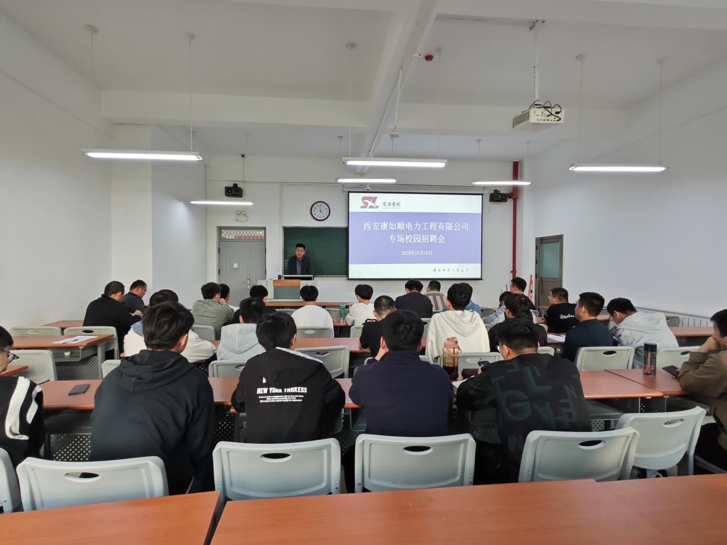 为贯彻落实党中央、国务院“稳就业”“保就业”决策部署,抓住2025届毕业生求职关键期,搭建更多就业招聘平台。10月16日下午,英国365集团公司邀请西安康如顺电力工程有限公司总经理王海龙、技术负责人王会卿一行两人到公司举办专场招聘会,50余名毕业生及毕业班辅导员一起参加了招聘会。